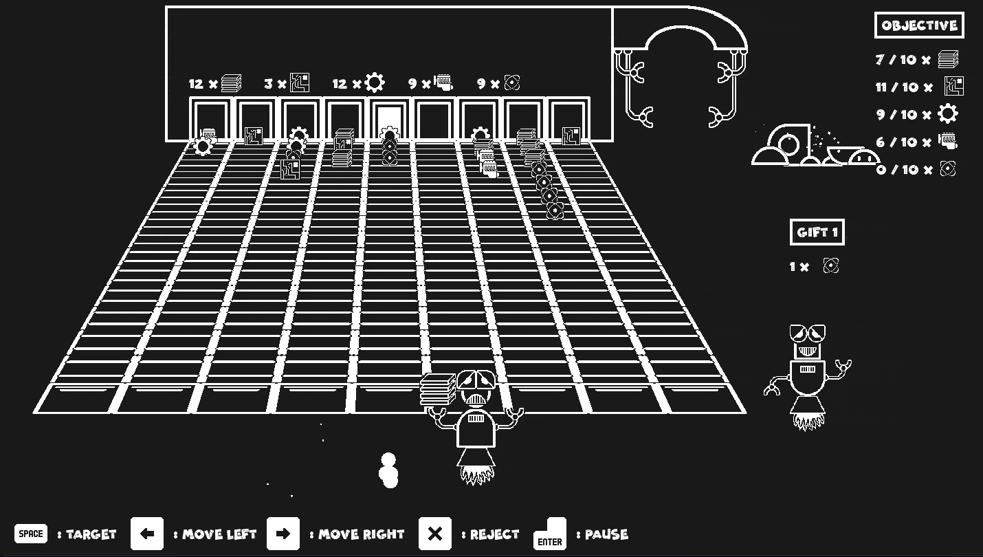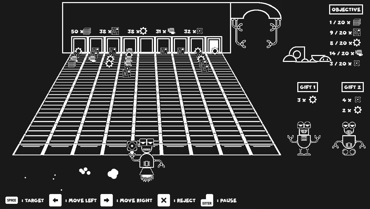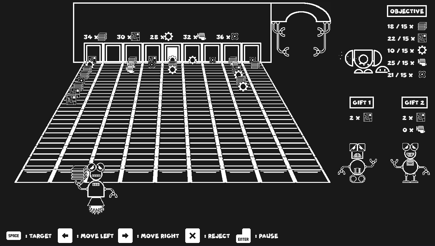 Volunteer robots arrive with Gifts specific part requests they desperately need. By fulfilling these Gifts, you feed the Machine, generate new parts, and move one step closer to repairing the Master Robot. But if the Machine runs out of parts… everything stops.